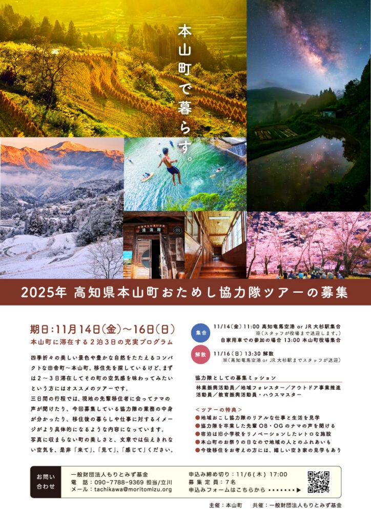 本山町の地域おこし協力隊の活動や、移住生活を知ってもらうためのおためし協力隊ツアーを開催します。